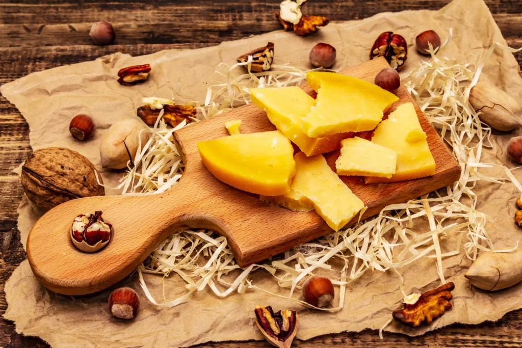 El queso muestra un interior limpio y homogéneo, de color amarillo marfil que se acentúa en las estaciones cálidas. Su pasta, semiblanda y flexible, revela pequeños ojos repartidos de forma irregular, signo de su fermentación natural. Al tacto resulta elástica y ligeramente húmeda, con una textura satinada que anticipa su cremosidad en boca. Su aspecto refleja la pureza de la leche y la tradición artesanal de su elaboración.